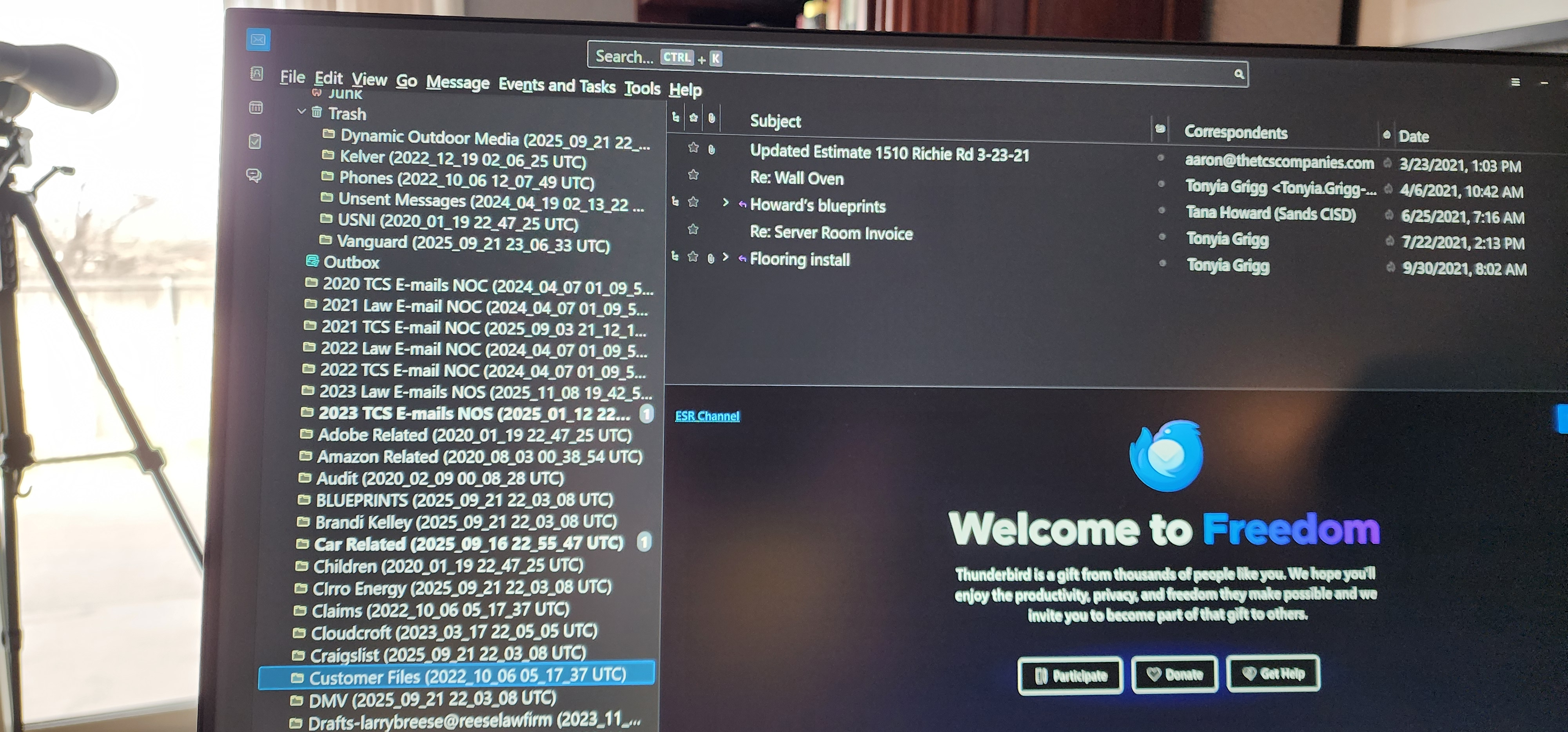 Is very frustrating. Will probably just need to delete it all and just keep the old system around for a year or two in case I need those e-mails. Any ideas on what could have gone wrong? What would be the best way to just delete ALL the displayed Local Folders on the new machine installation - so there is just a clean slate and I can start over and be able delete folders and e-mails again?