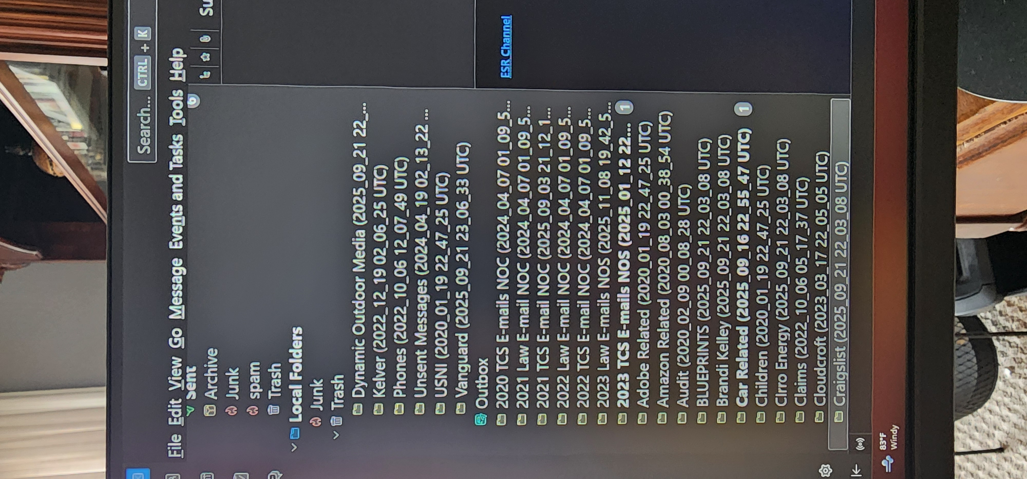 All of these have a date and time appended to them in the destination installation. For example, if the original folder is "Prosperity Bank" the destination folder is labeled "Prosperity Bank (2025_09_21 23_06_33 UTC)" and will not let not populate (shows no messages inside).