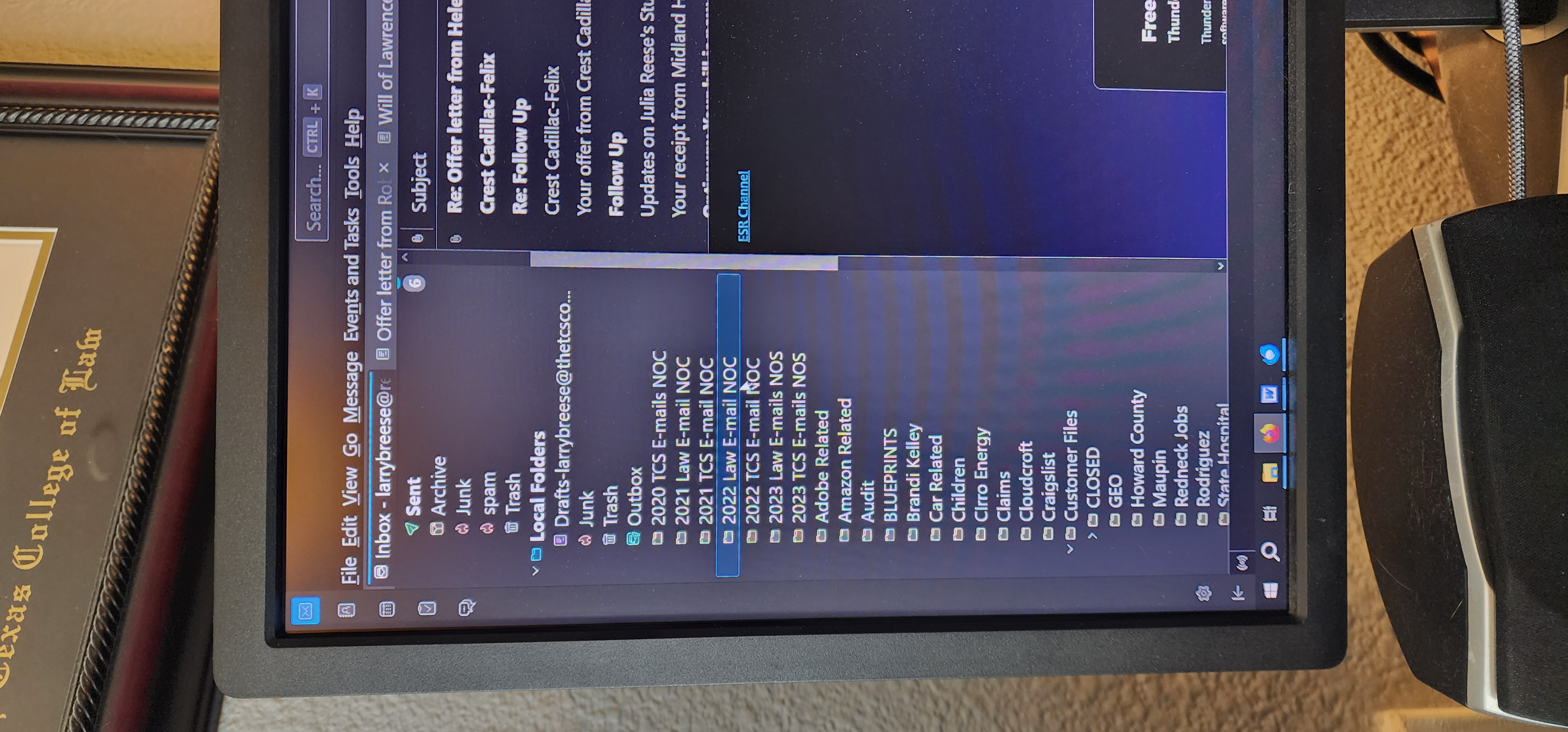 There was no change I could discern on the Local Folders on the new machines. Still no directory trees available, many folders with no or only a few e-mails when 100s should be there, etc.... Still cannot delete directories or empty trash folder in the Local Folders. I've uploaded a few photos to illustrate the difference between the two directories (no directory trees, etc...).