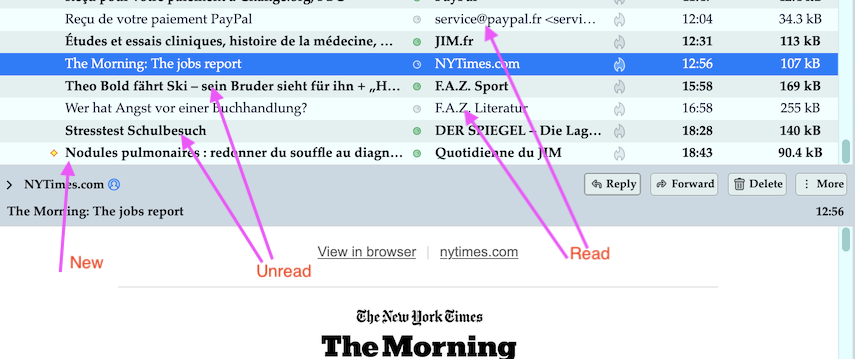 I don't know what exactly you mean by "jumbled". Can you please show a screen shot with your jumbled messages in the thread pane (anonymise names and email addresses)? Most times (90%) I'm sorting messages in the thread pane by "Date" and as you can see in my new image new messages are "jumbled" with other messages, unread or read. Which is normal since I've decided to sort my messages by "Date" by default, and not by "Subject" or "Unread" or by "From" ....etc.