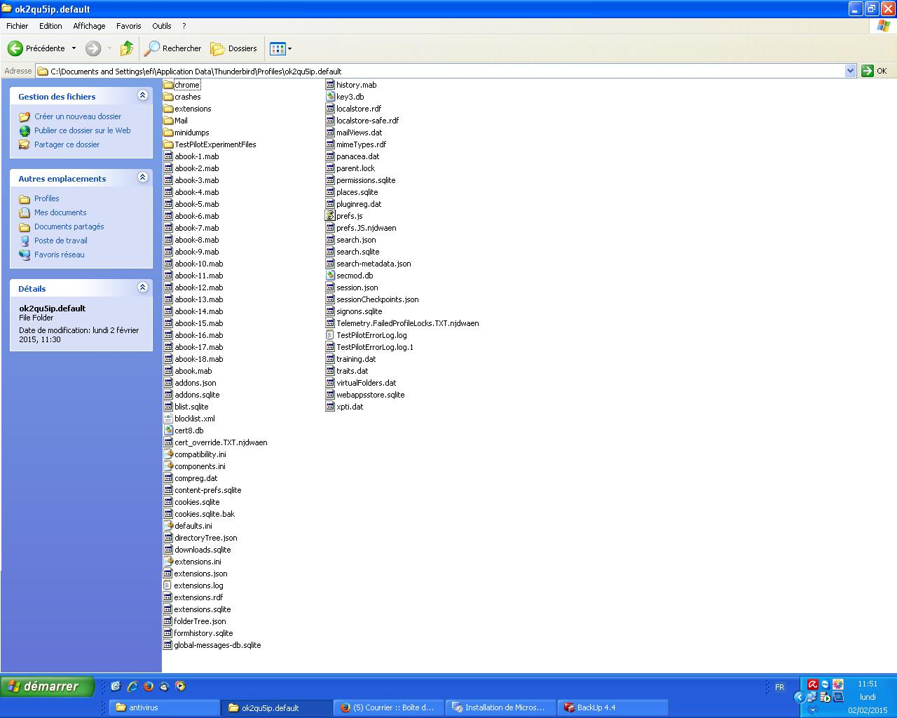 I transfered all files(Size seems OK) from profile folder to another profile but it still cannot read them.I attached a screenshot from original infected machine profile folder. It is weird because I can see there was no infection on files like inbox or all other files, their size is ok 0.5GB but still they are unreadable.Any help would be appreciated.