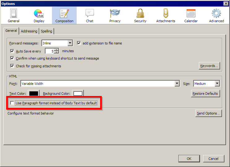 Hi, am using TB 52.4.0 (32-bit) w/ Win10. Every time I get a TB update, I get a really annoying and unwanted reconfiguration of my settings. How do I go back to single spacing after hitting the Enter key? When I go to Options > Composition > General tab, I do NOT see the line "When using paragraph format, the Enter key creates a new paragraph". So what do I do? Also, how do I change the default browser to Firefox? The default browser in Bing, and Firefox is not listed as a option. Thanks in advance to all responders, S.