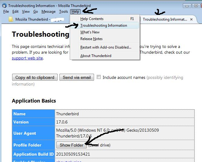 re : In the menu bar, select Help. Select Troubleshooting Information. Select Show Folder.