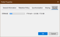 Right-click the Inbox in the Folder Pane, Properties, and then the Quota tab (see picture for a gmail account). Not all servers support quotas, so you'll have to consult the provider's website. Note that in the case of gmail, the quota includes other services like Google Drive. The 'size on disk' of a folder, e.g. Inbox, is shown on the General Information tab of Properties.