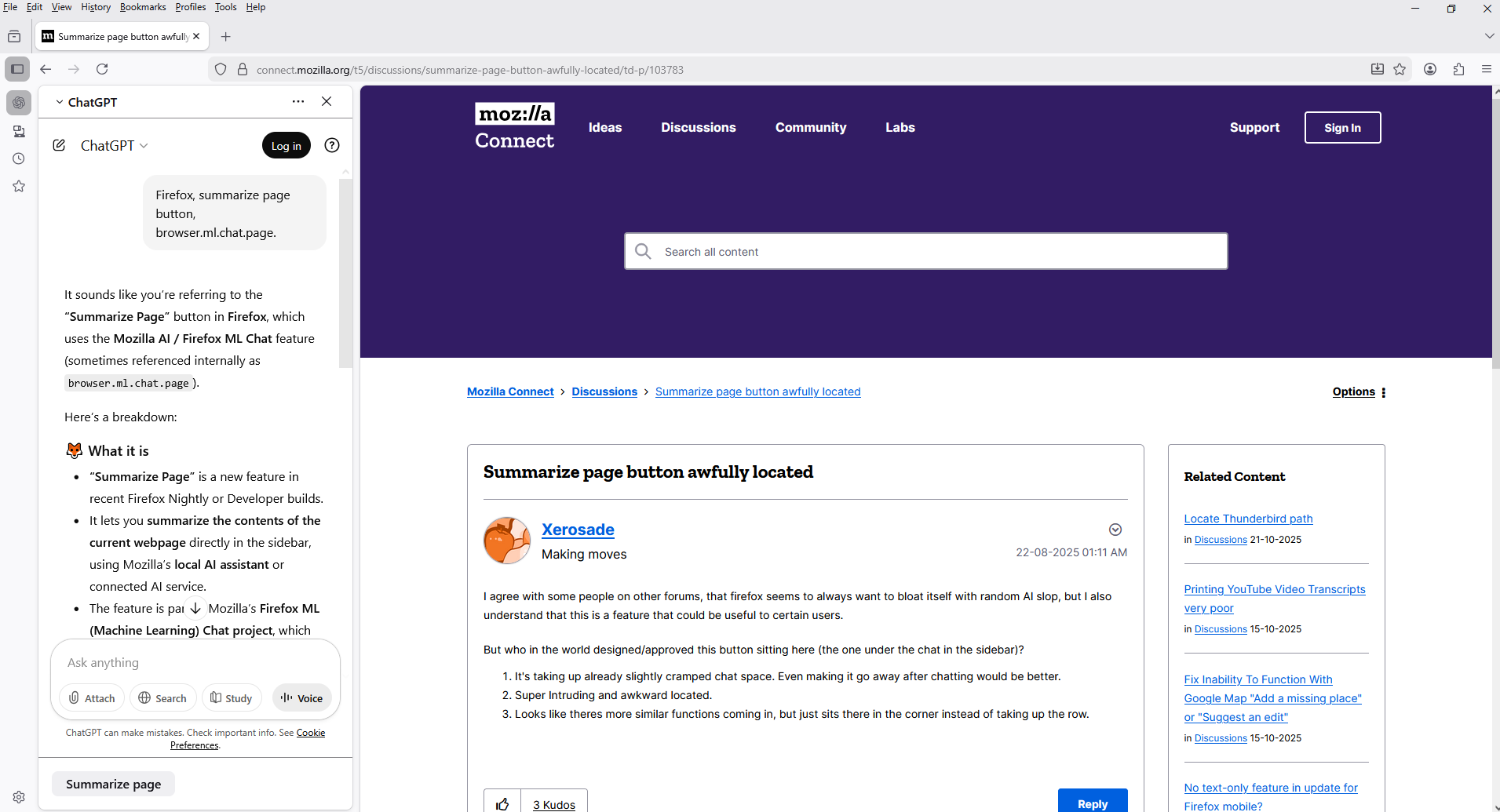 A similar discussion. https://connect.mozilla.org/t5/discussions/summarize-page-button-awfully-located/td-p/103783