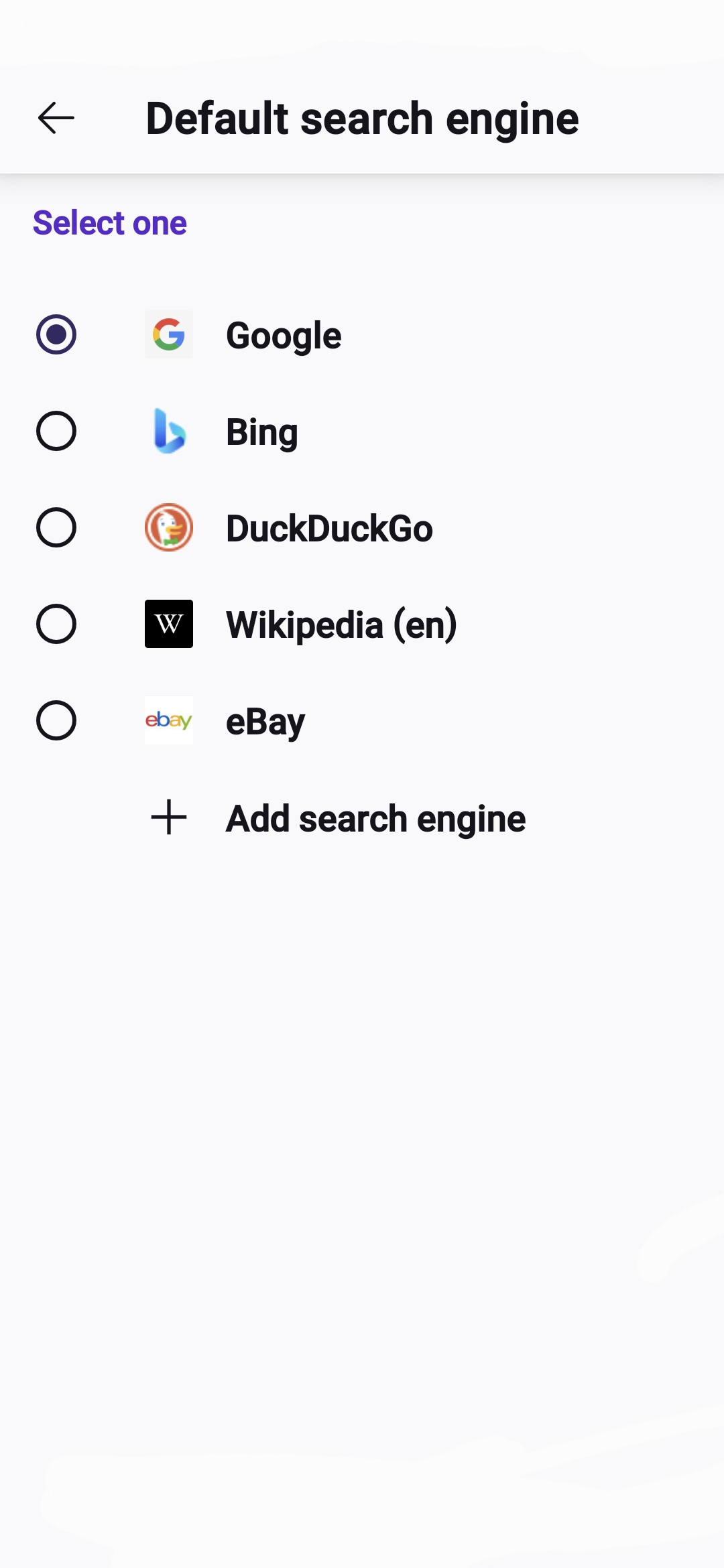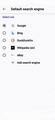 The search engine is not even on the list. Like i have said before. I want to change from Google search engine to Firefox or Mozilla engine. Firefox and, Mozilla is not listed!!!