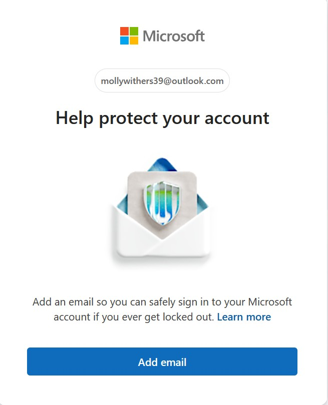 Thunderbird won't work anymore. Microsoft message requiring that I add another email address in case I can't access email account. I don't want to use other email address, but there is no other option to this message.