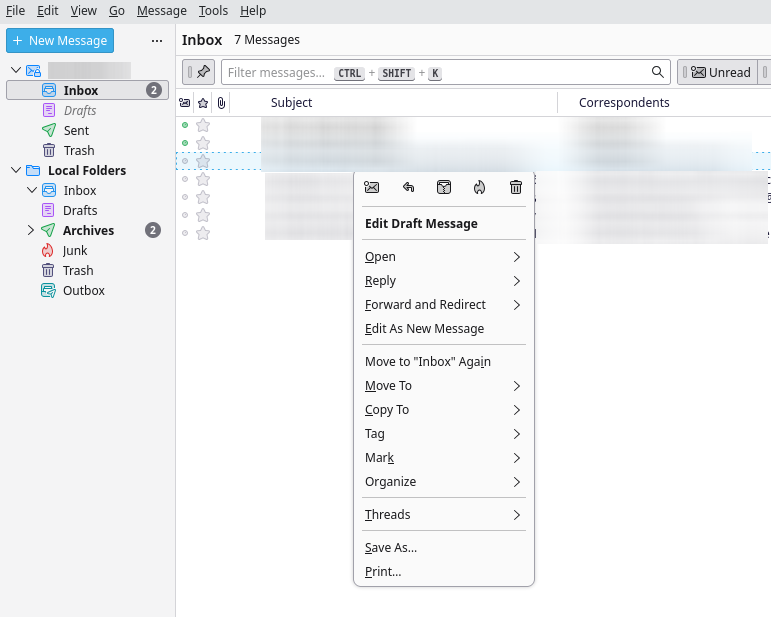 thunderbird imap inbox default action is edit draft after upgrade. how to change back to open?