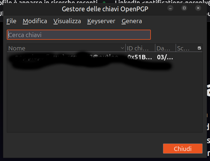 chiave gpg non funziona sul nuovo computer