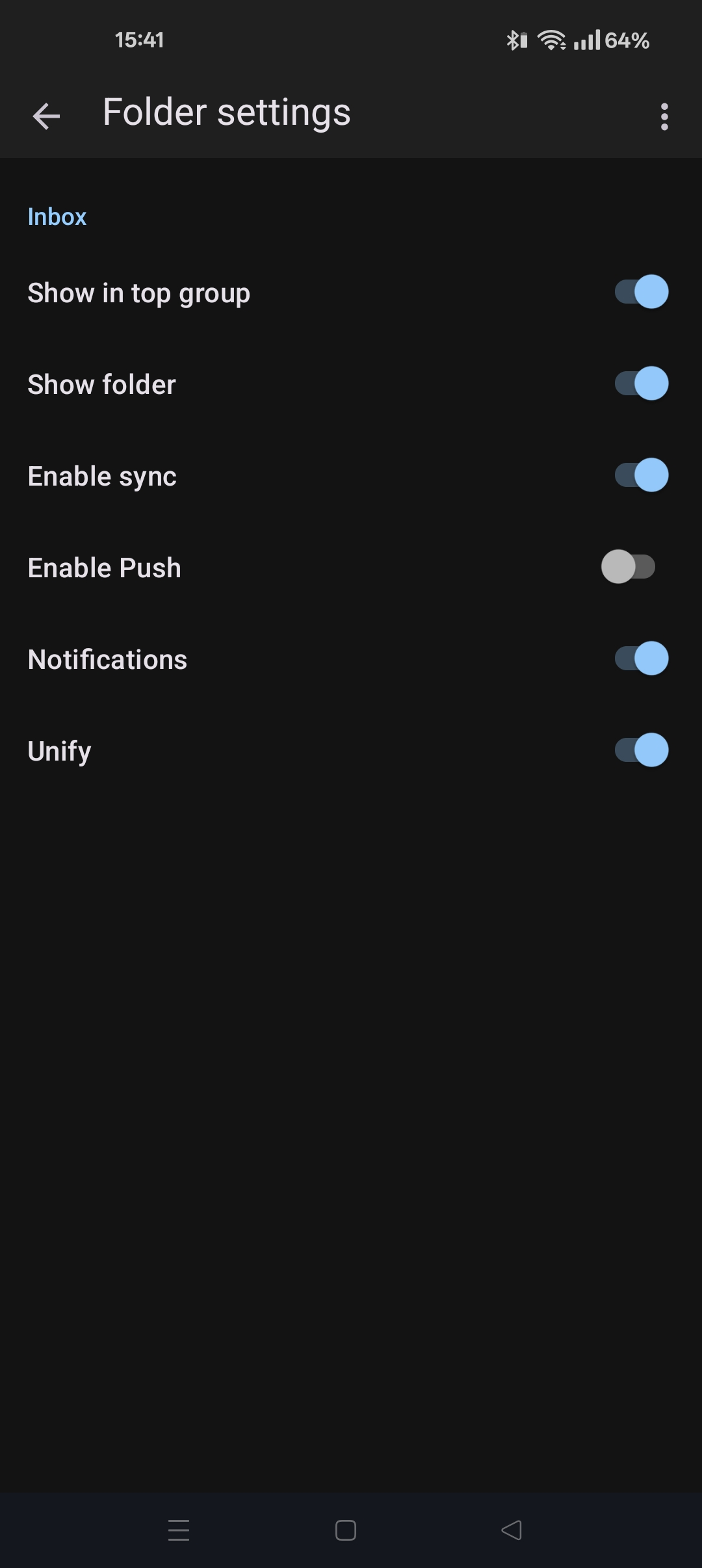 To check the folders being synchronised. Navigate: Email account > manage folders > [folder name]