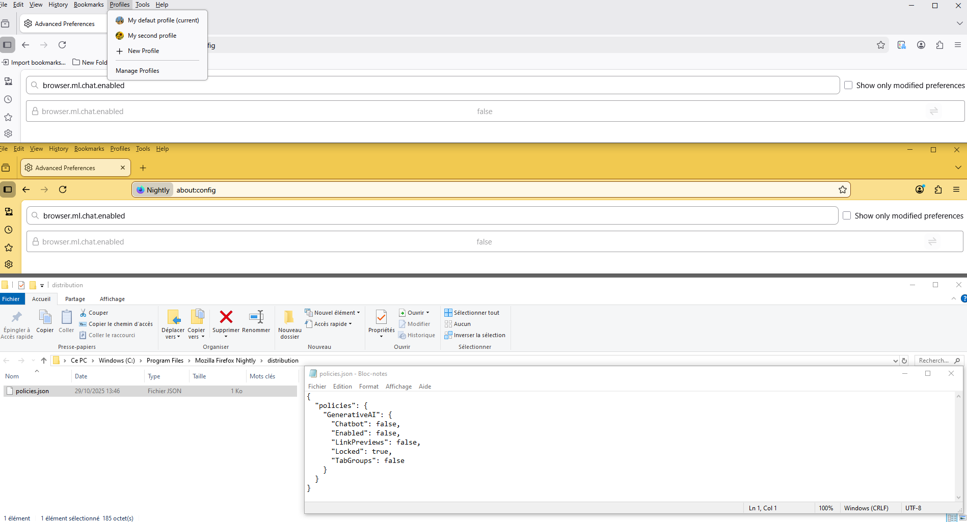 Hi, I noticed that my Firefox version has just been force-updated, on two of my computers, even though I had the automated updates unselected. I also noticed that the new version had added an opt-out option to use "AI" for my tabs which I do not want. There may be other settings that have appeared like this forcing "AI" on me and I am not going to check all of them. I will uninstall Firefox as it is no longer respecting my privacy and autonomy as a user, following the full-blown embrace of "genAI" which goes completely opposite Firefox values such as privacy, ethics, environmental responsibility and respect of their users. I might come back when Firefox goes back to being a privacy and environmentally-friendly browser.