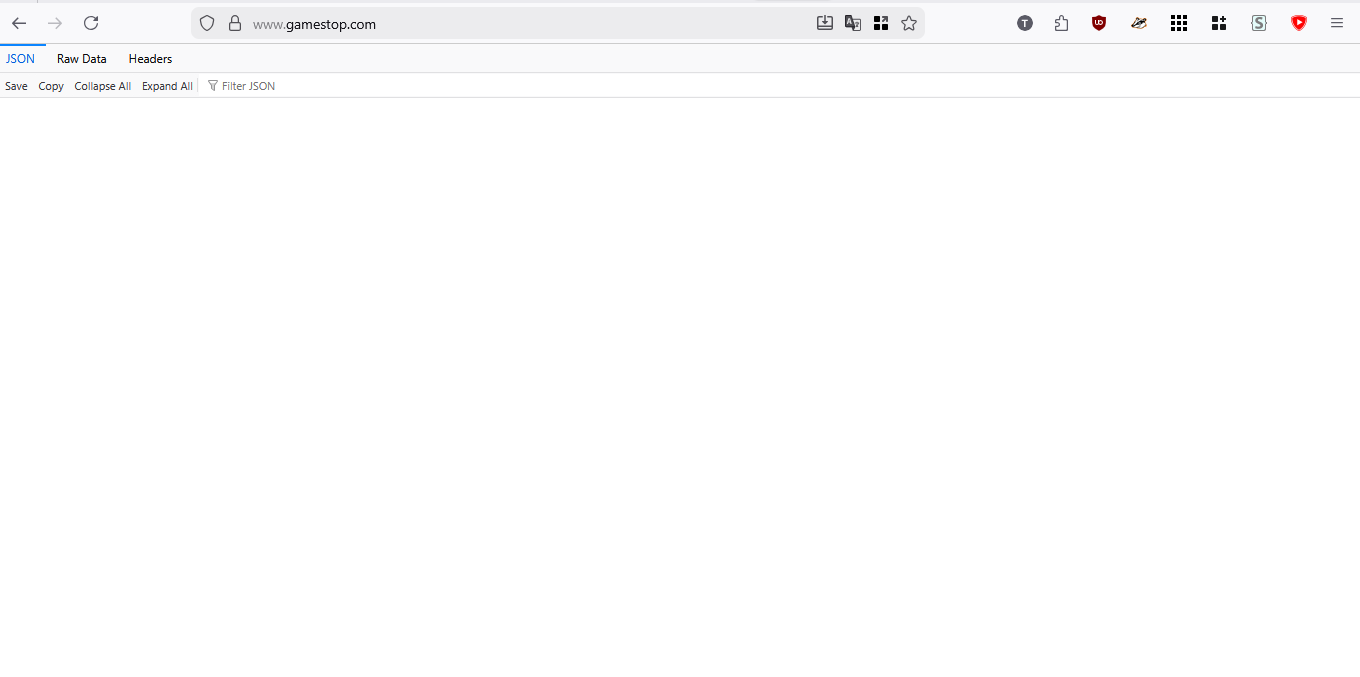 I only get that damn "JSON, Raw Headers, Data" screen when I try to go to gamestop's website. HOW do I fix this? This is only the latest in a long string of stuff your browser does badly, and if not for the fact you are the only browser Youtube cannot block ad blockers on, I would have tossed your browser a long time ago.