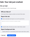 Then I got a tab crash on Youtube. I wouldn't call tab crashes a daily occurrence for me, but I'm accustomed to them