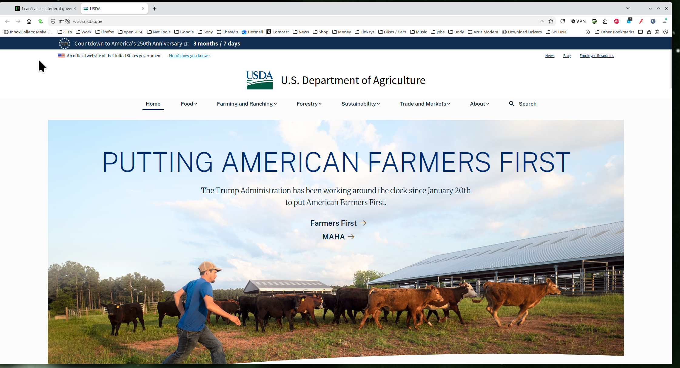"Firefox can't connect to the server at usda.gov Try connecting with a different device Check your modem or router Disconnect and reconnect to Wi-Fi"