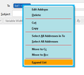 I should have said right click, not left, and I get the options I listed, not the ones shown. If I left click, nothing happens. In particular, the expand option is not available when the list name is in the TO line. If I go into the address book, I do get to expand the list, but then any subtractions would be permanent, which is not what I'm trying to do.