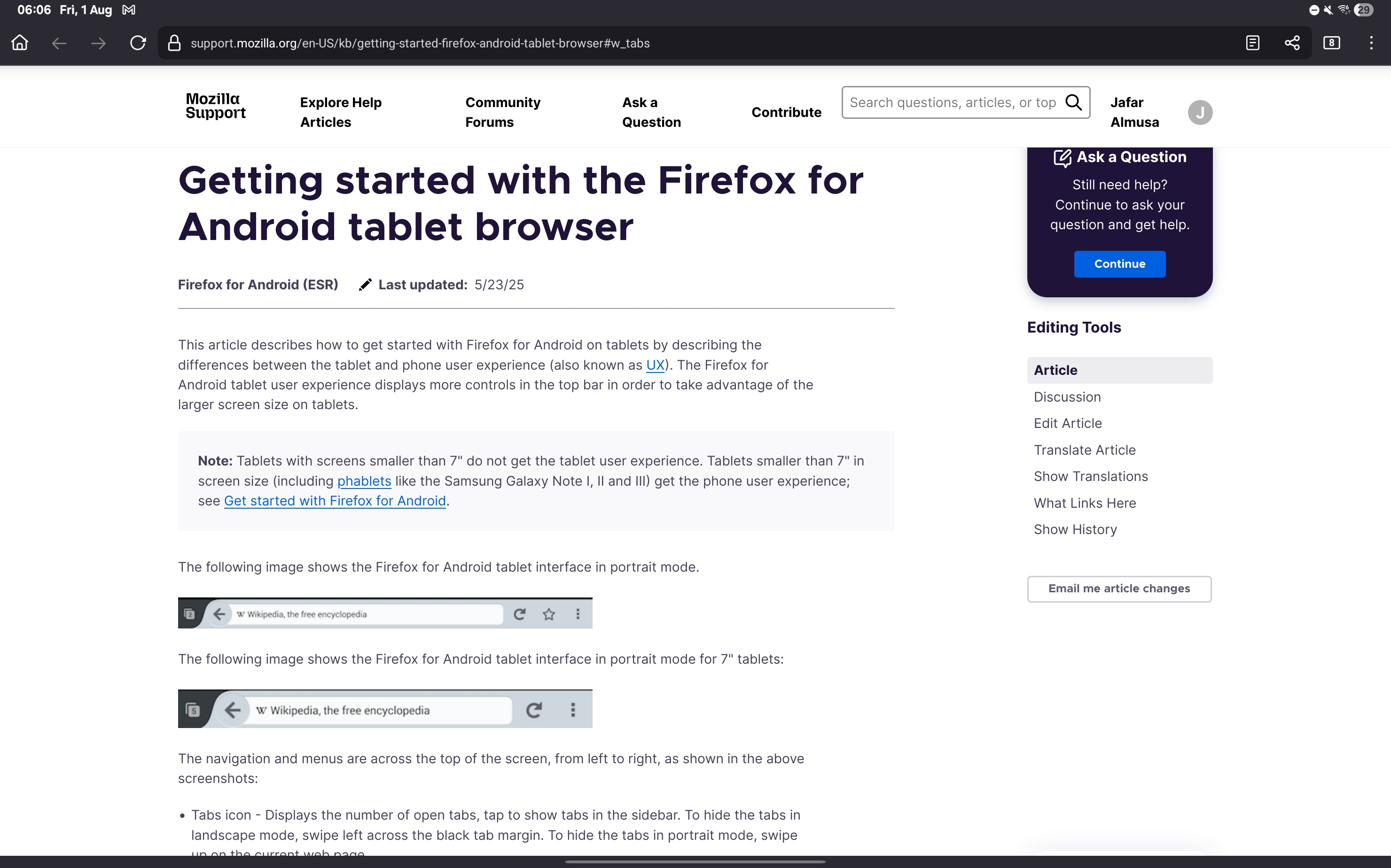 according to [https://support.mozilla.org/en-US/kb/getting-started-firefox-android-tabl...] this article by mozilla any tablet bigger than 7" screen should be getting a ux that is designed for tablets . my device is a Samsung galaxy tab s10 ultra , which comfortably exceeds the mentioned 7" and yet, the UX on my device is that of a phone, where everything looks comically stretched and the screen space is wasted . most notably the navigation bar looks so silly, where my tabs can only be viewd by clicking the tab icon. I couldn't find anything in the settings that can change these options.