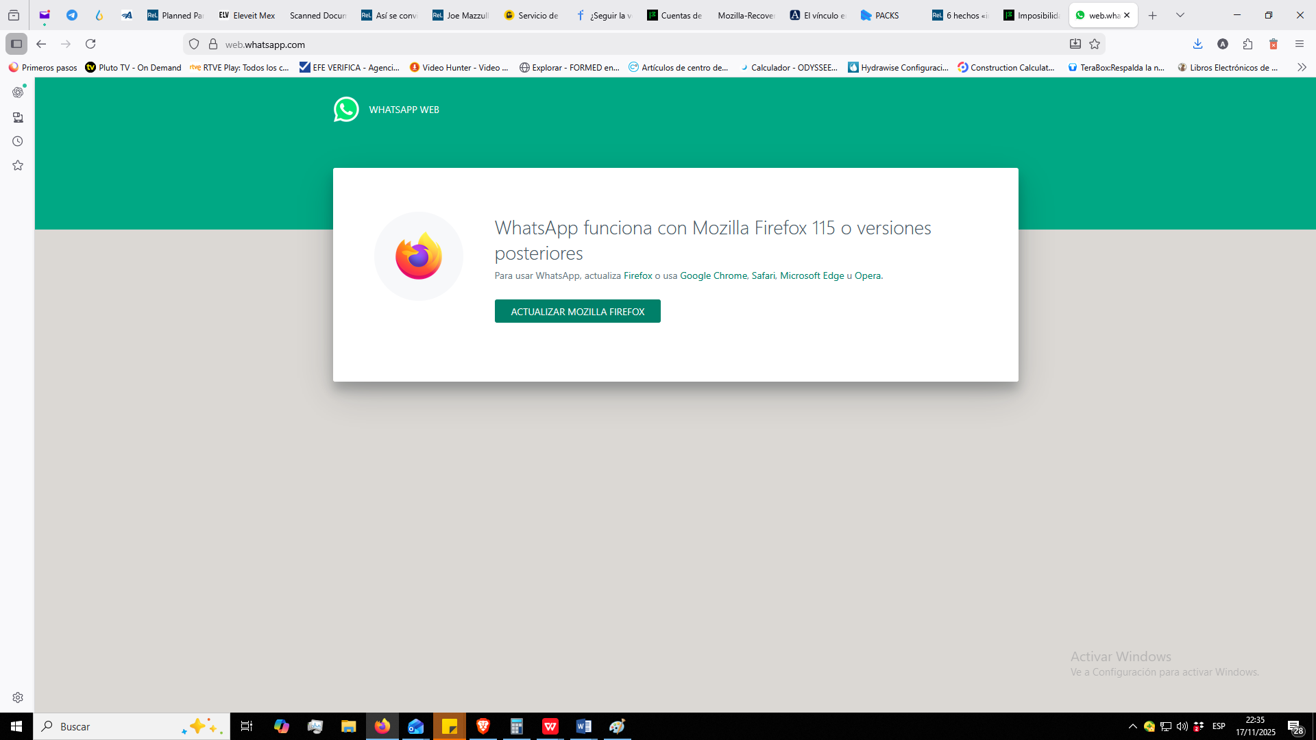 Imposibilidad de abrir Whatsapp en li escritorio de Firefox