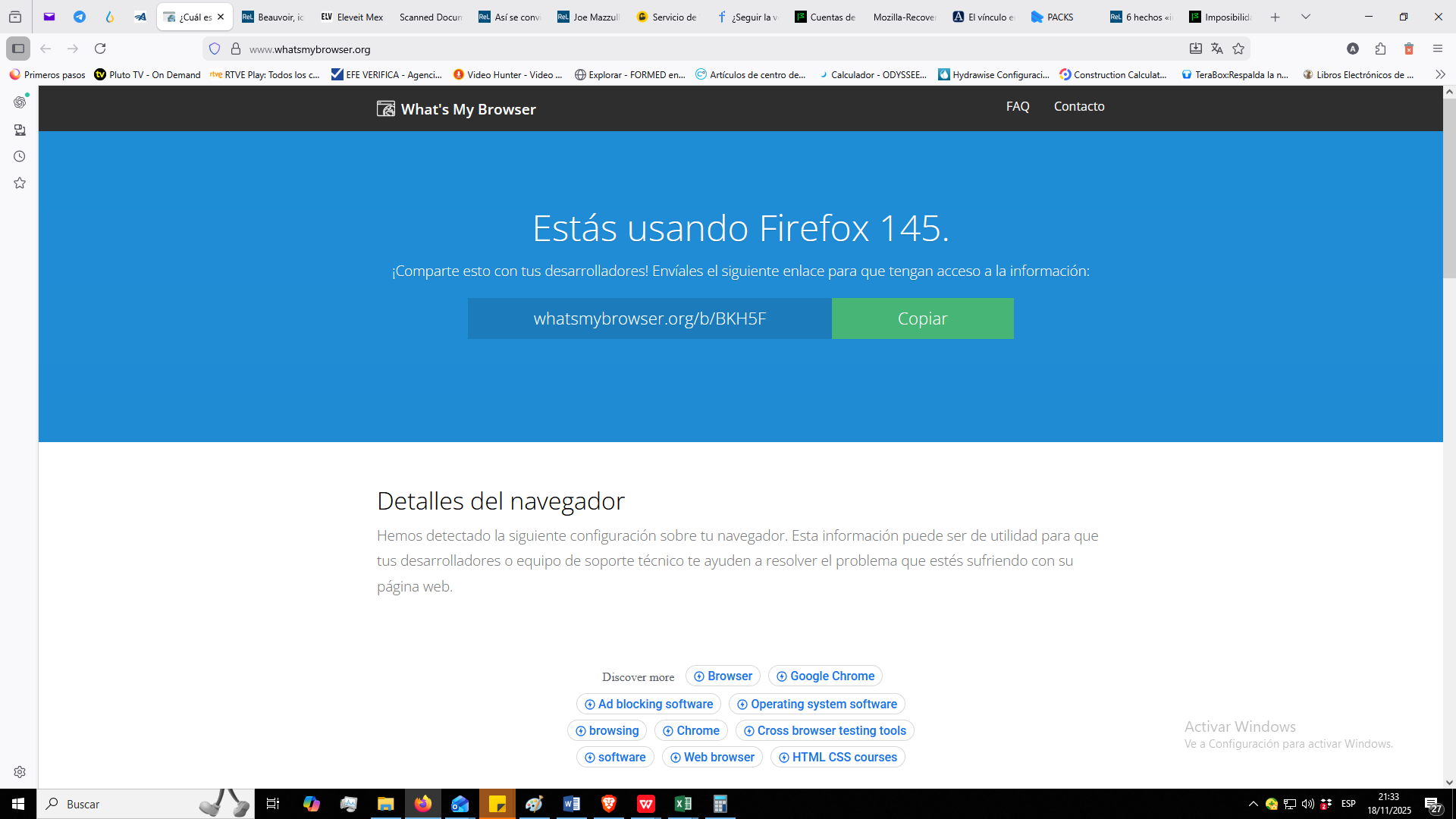 Que versión indica en "Acerca de Firefox"? actualmente la ultima versión estable es 145