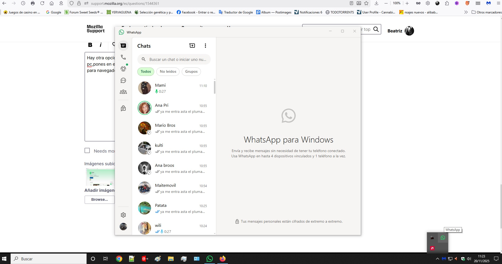 Buenos días, Beatriz, sí, muchas gracias, he querido evitar tener 2 navegadores abiertos, solo para que pueda ver mi 'guatsop' siempre presente, y actualmente lo tengo en el navegador Brave. Sin embargo, por alguna razón, en mi Firefox no lo he podido abrir y quiero tener solo un navegador abierto.