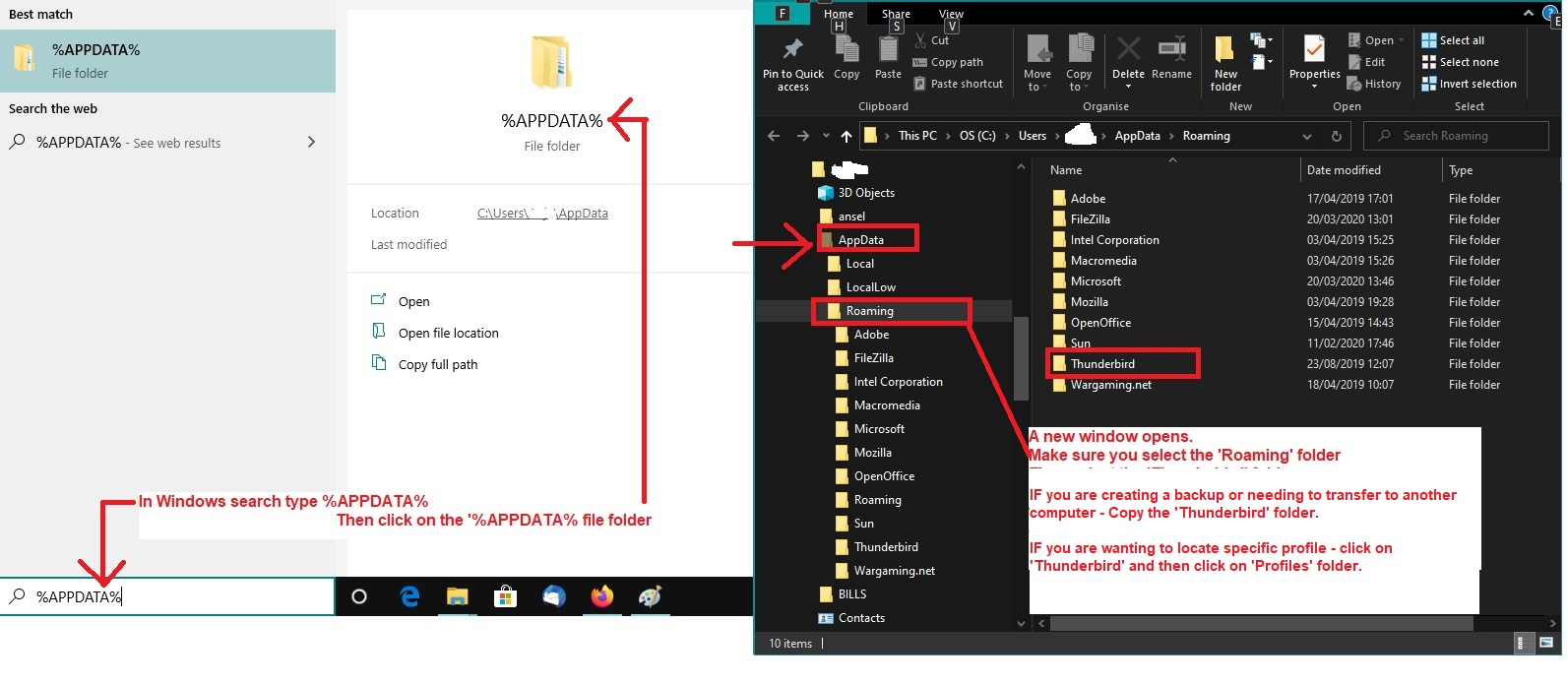 - Select 'Thunderbird' folder (note - should you ever need to do a full backup of everything then this is the folder to copy)