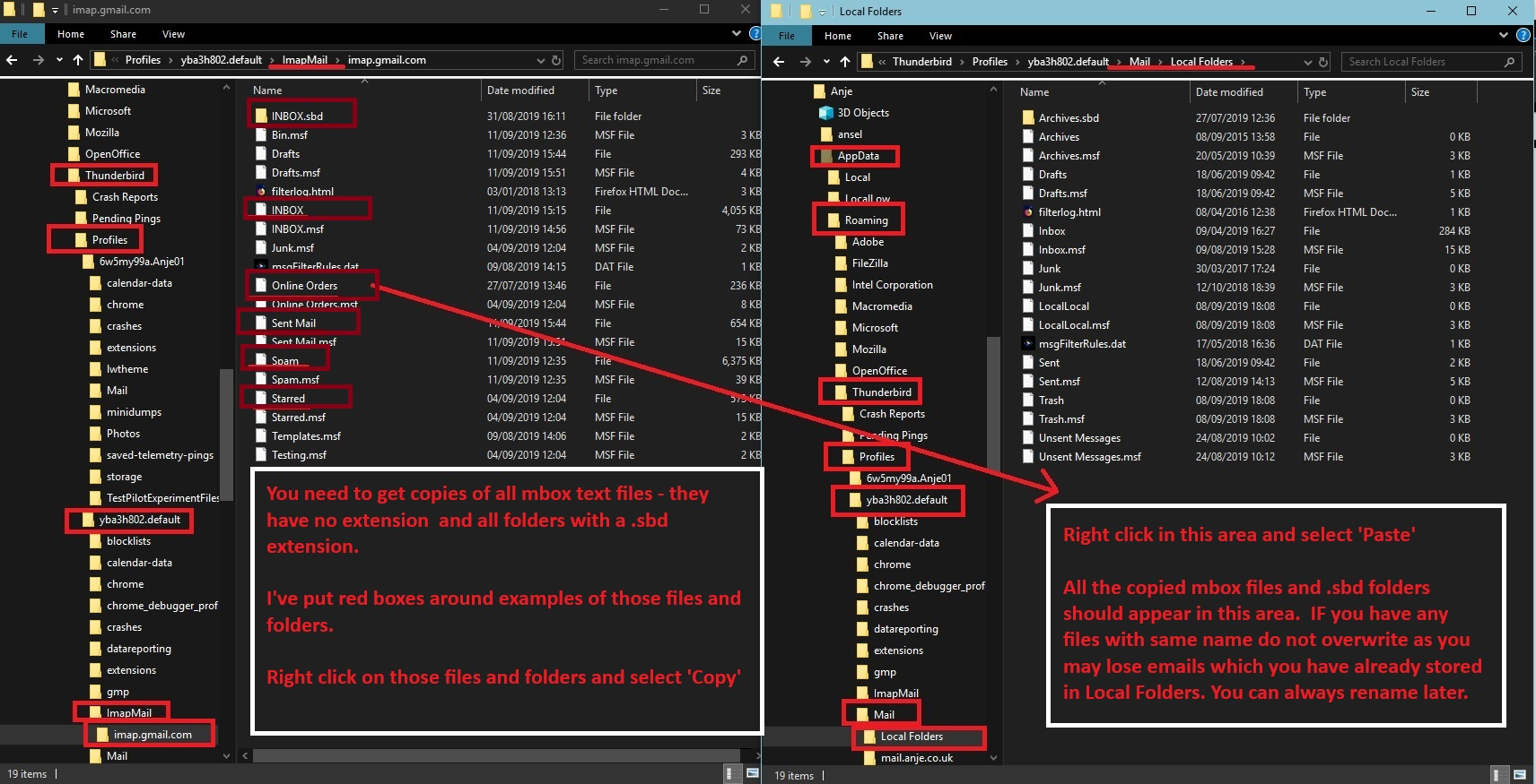 - Copy all the mbox files (they have no extension) and any folders with a .sbd extension