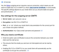 Hello again Matt. Further to my previous reply, I did a search for my own benefit, and came up with this AI generated response: - (attached) This seems to me - correct me if I am wrong, please - that "STARTTLS" is a certificate in itself or replaces a certificate.