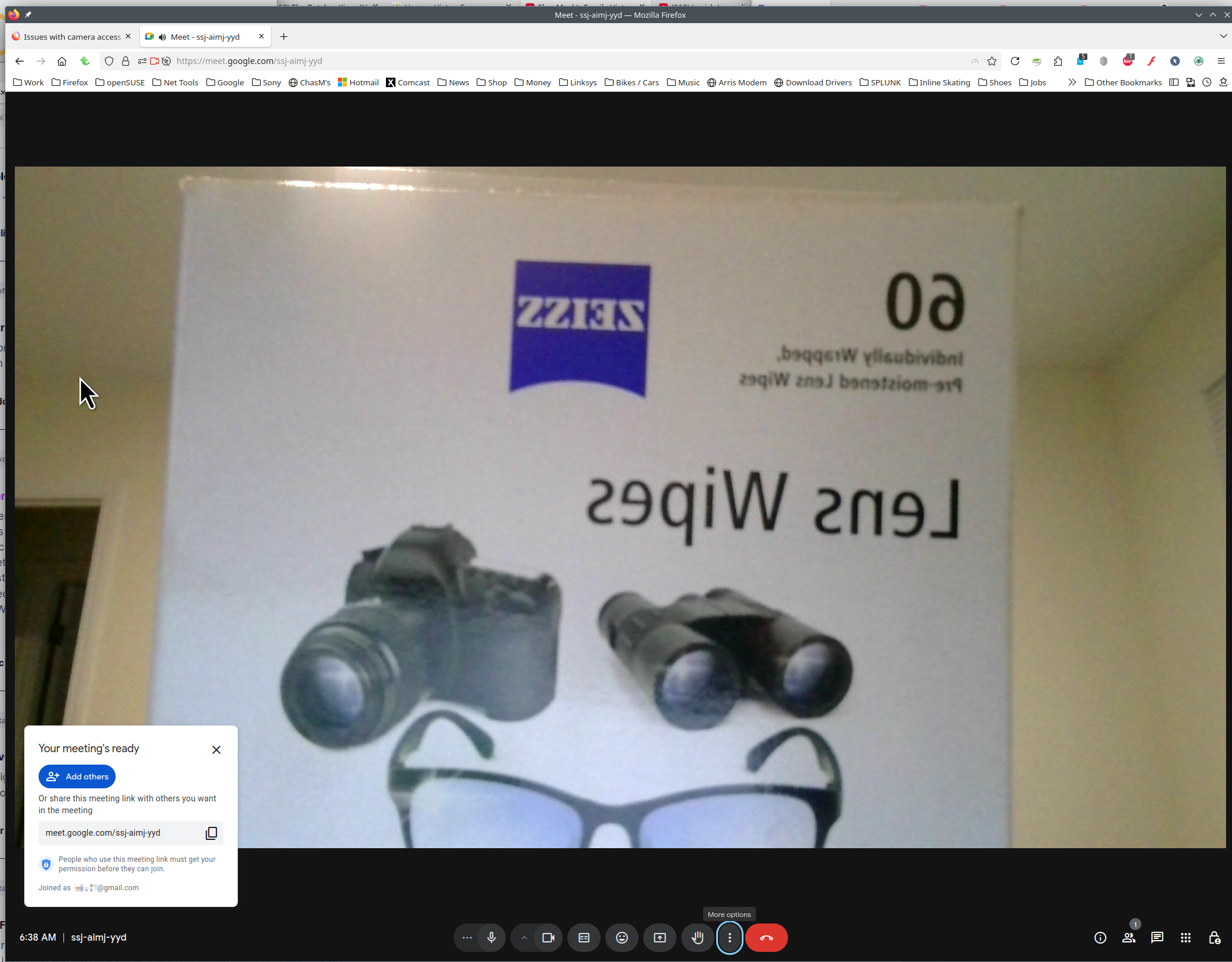 I have no issues with meet. Can you go to these sites and test that your camera is working. https://webcammictest.com/ https://app.zoom.us/test