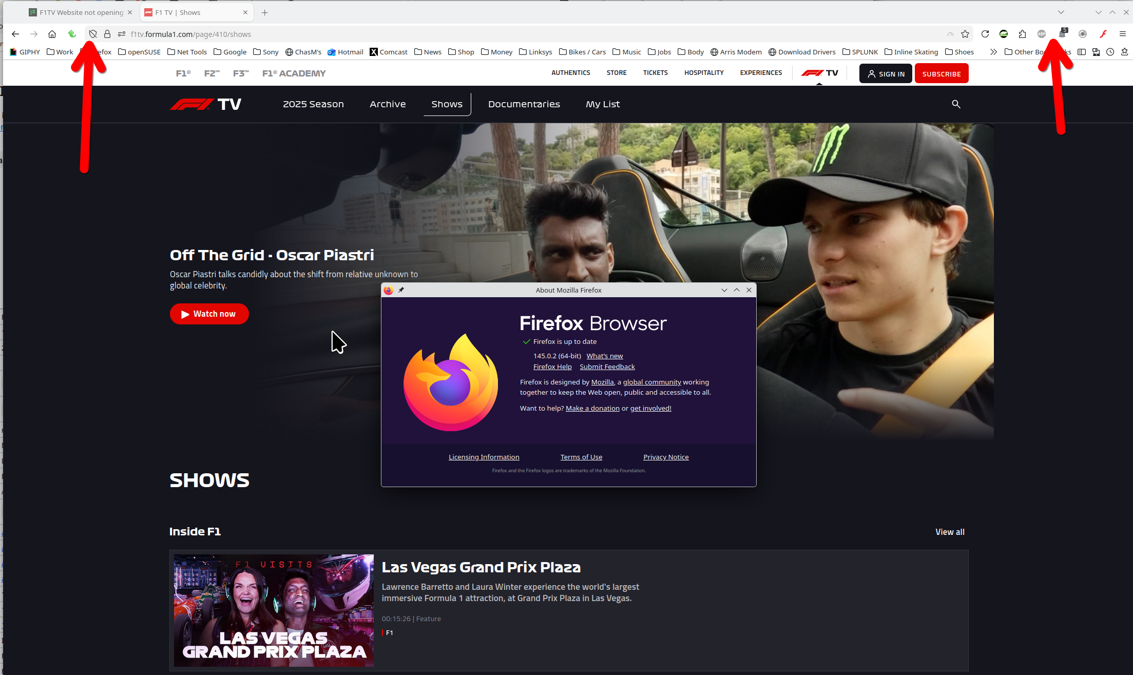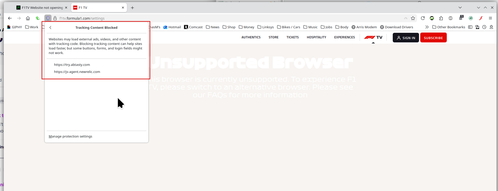 Ever since the last 3 updates, I have been struggling with F1TV. Prior to the very latest update I could still log in after about 4 attempts of loading the site, but now, I keep on getting error messages. On Edge i can log in with no issues. Any ideas on this issue?