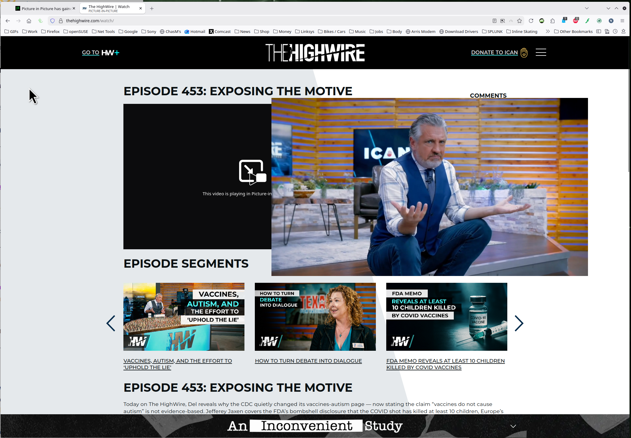 Steps to replicate??? I have no issues from this site using PiP. see screenshot https://thehighwire.com/watch/