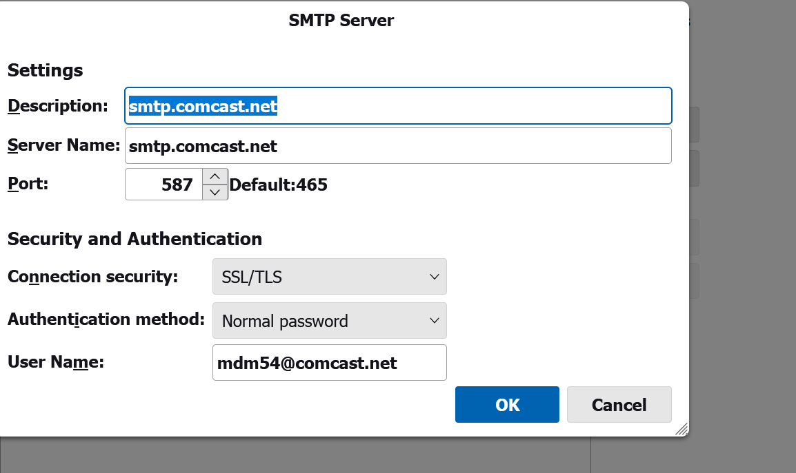 i am crying here i have changed my password for Comcast several times but i think ih ave screwed up The smtp server i am not sure wast do do there this is what i have can yu please tell me what to do please help i t will not et me send please