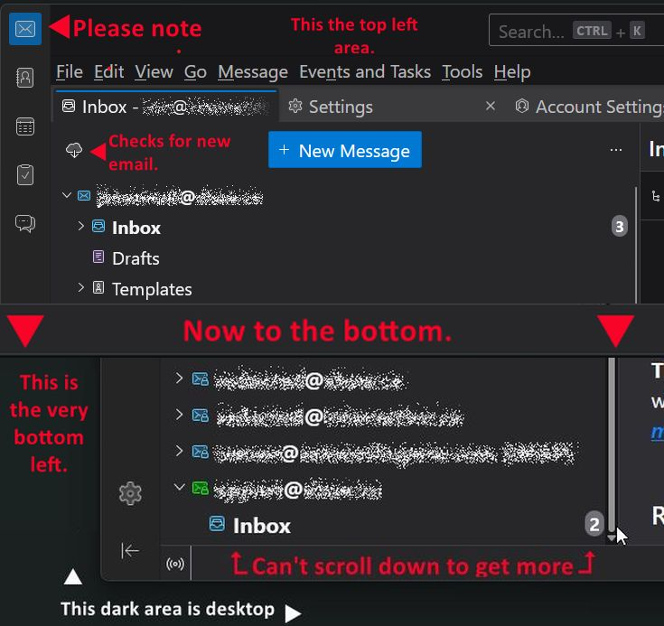 No. The revised image is attached to this post. It includes cursor position and bottom left of Thunderbird GUI w/ Scroll Bar at it's very bottom. I hope this helps. ~r