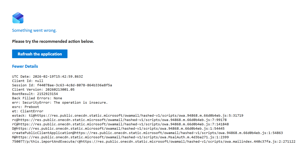 Upon starting Thunderbird today, it appears the connection to my two Outlook exchange accounts (through an Owl extension) are no longer functional. I can receive messages but I cannot send them. I have attached images of the error it returns first (Error1) and then the screen that results upon refresh (Error2). I can reach and send mail from my accounts using Outlook365 web access, so it must be a Thunderbird configuration problem. Please help!