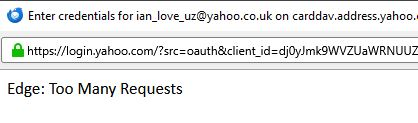 I try to down load new messages and get a yahoo sign in (something new) with my email address and an option to hit "next". When I do the message is Edge: too many requests.