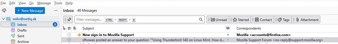 "Using Thunderbird 140 on Linux Mint. How do I change the font for read and unread messages in the inbox message list using userChrome.css?"